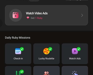 Watch Ads: 1 ad = 1 ruby (max 50/day)
