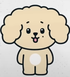 DOA — a playful dog with a curly coat, mirroring DK's cheerful and affectionate personality.